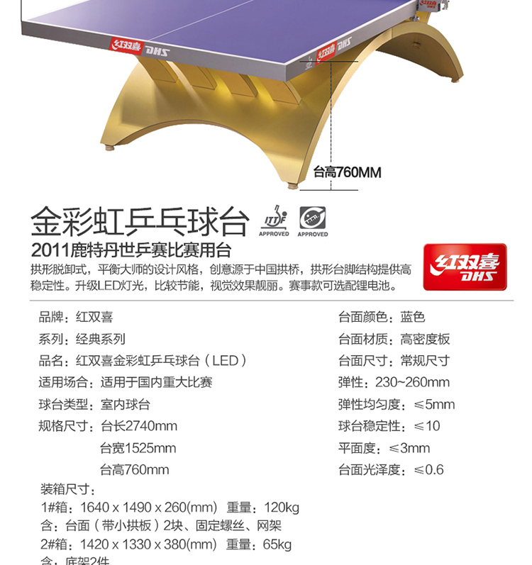 紅雙喜 金彩虹乒乓球臺