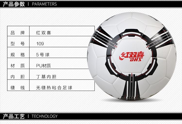 紅雙喜足球FS109 無縫熱粘合PU高彈比賽訓(xùn)練使用足球