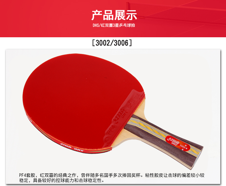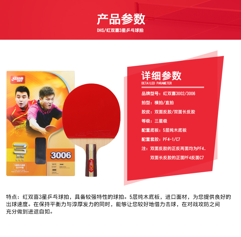 紅雙喜(DHS) R3002-R3003-R3006-R3007三星乒乓球拍
