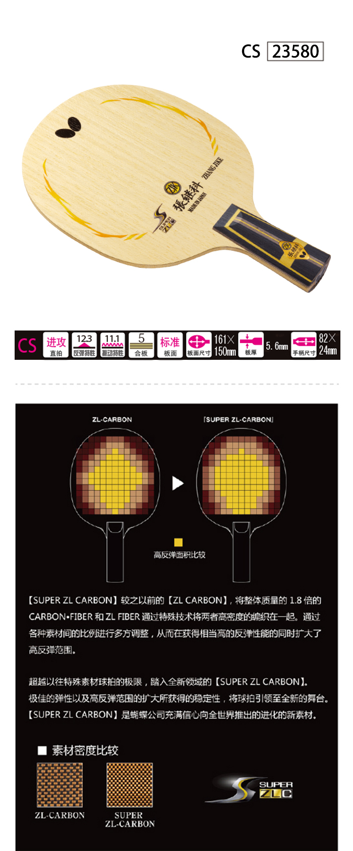 Butterfly蝴蝶23580 張繼科超級(jí)ZLC(張繼科SUPER ZLC)乒乓球底板 蝴蝶高性能底板