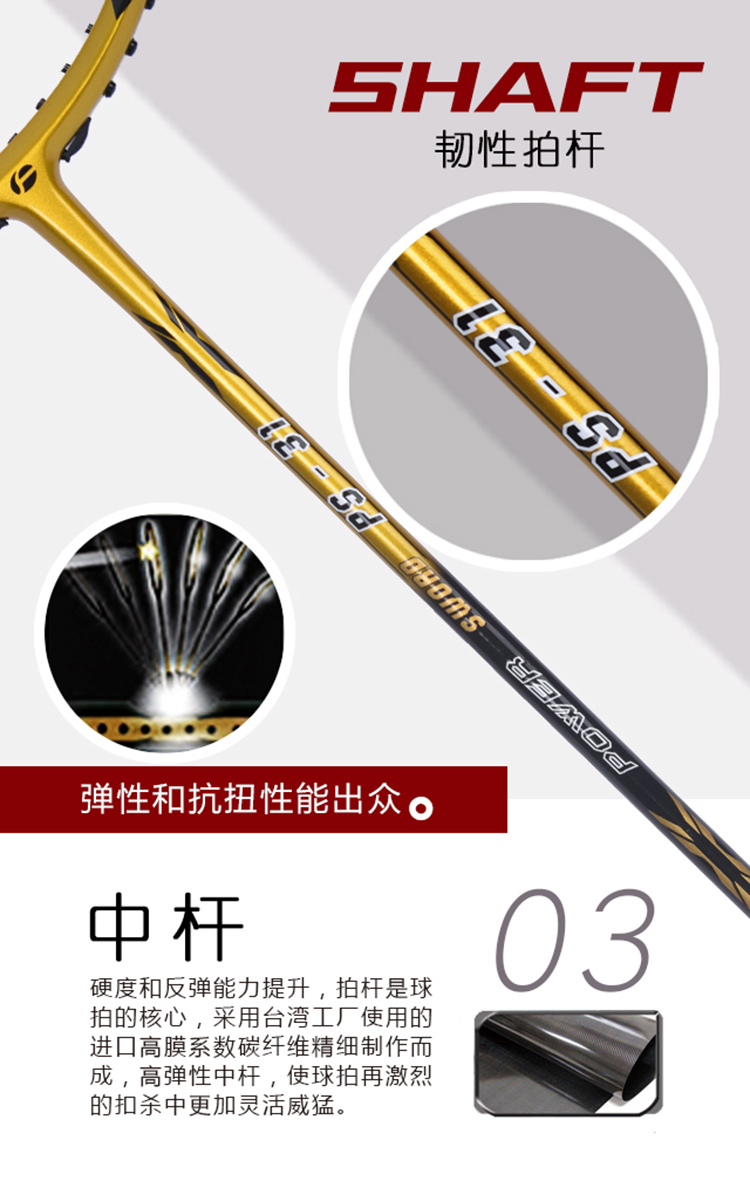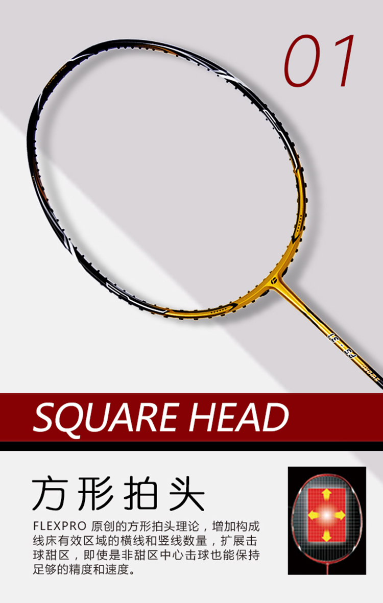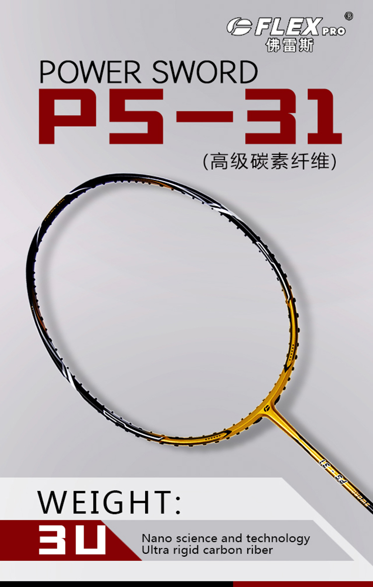 佛雷斯FLEX初學(xué)者初中級進(jìn)攻型速度型破風(fēng)拍框金銀色羽毛球拍