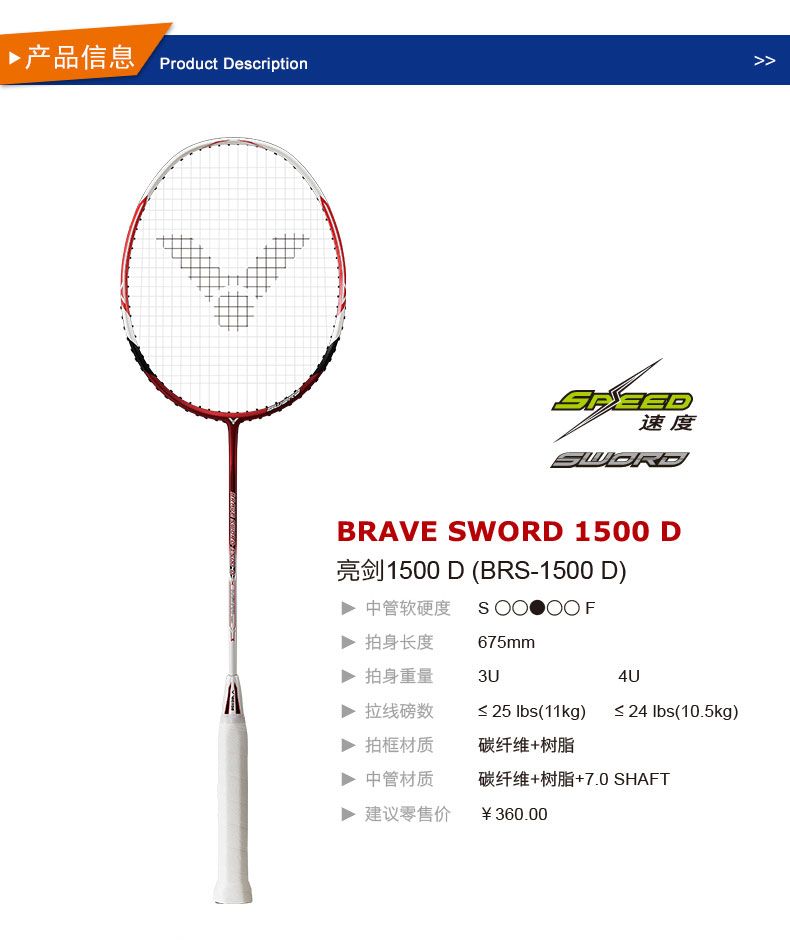 VICTOR威克多羽毛球拍單拍碳纖維業(yè)余初級(jí)速度類亮劍系BRS-1500D