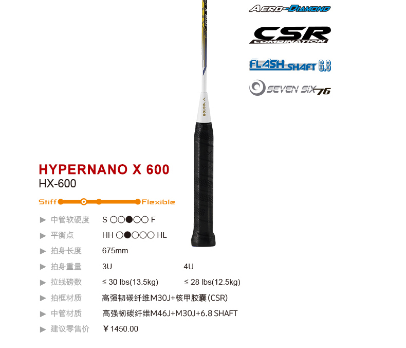 VICTOR威克多羽毛球拍單拍碳纖維專業(yè)比賽耐打快速全面類HX-600