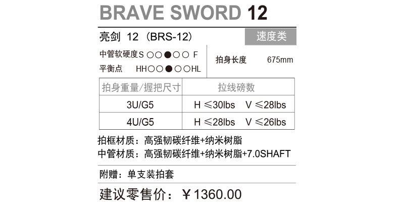 VICTOR威克多羽毛球拍單拍碳纖維專業(yè)速度類亮劍系列 BRS-12