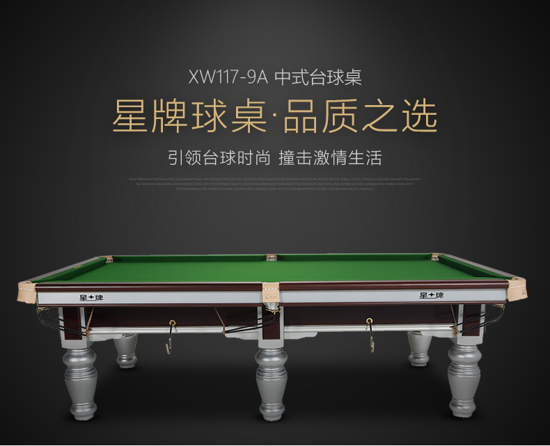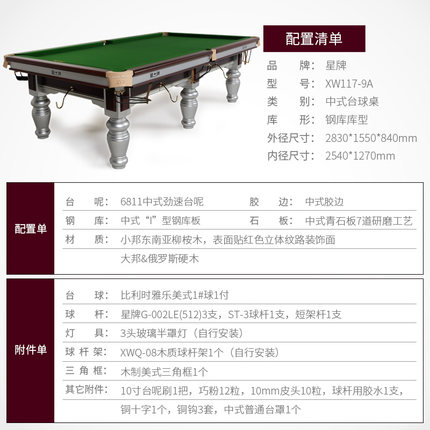 星牌 臺球桌 XW117-9A中式黑八鋼庫球臺