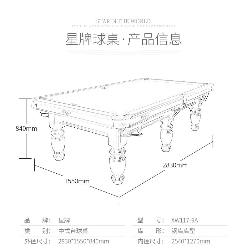 星牌 臺球桌 XW112-9A中式球臺